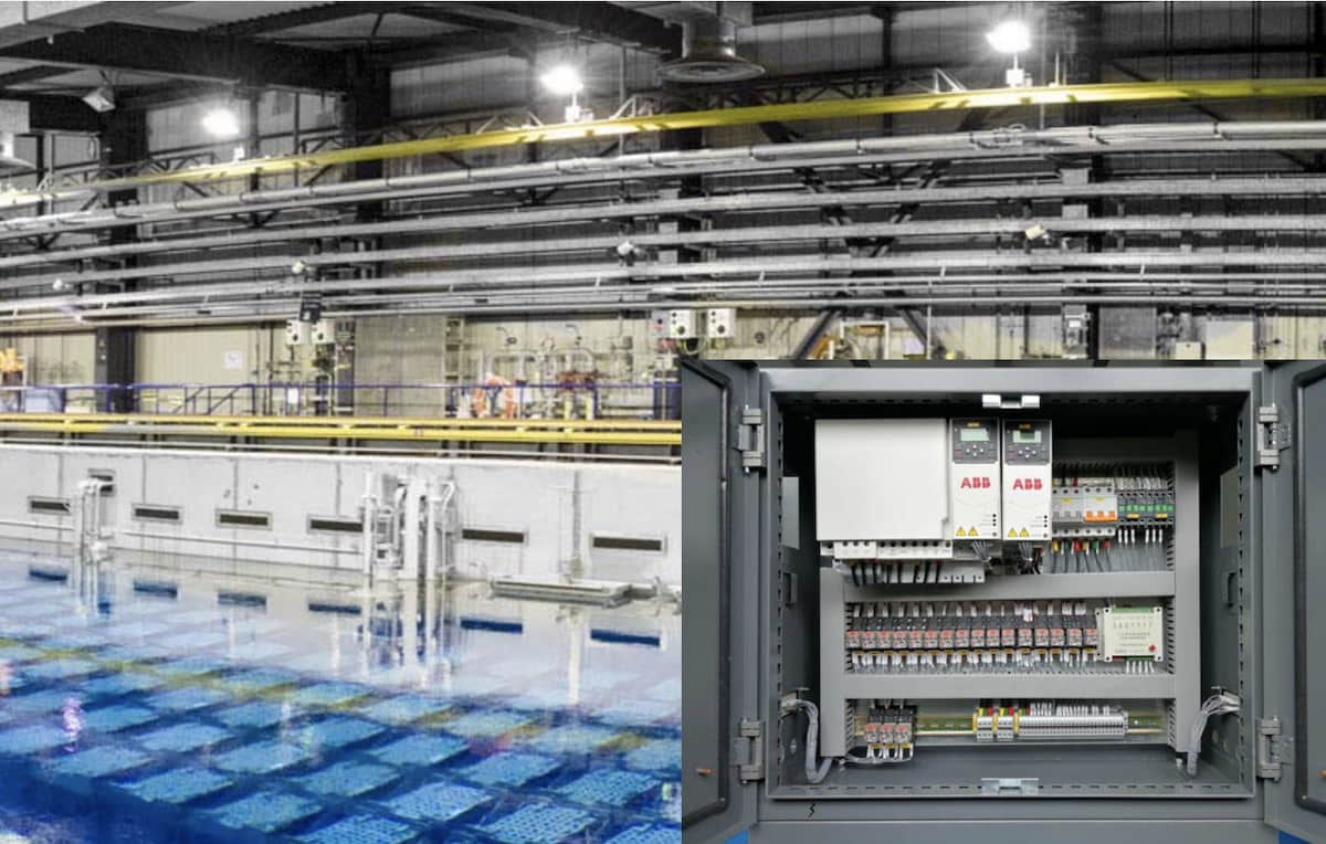 电控系统控制柜共2个,小车控制箱放置在小车上,内部安装有主钩、付钩、小车的驱动系统及附属的断路器、继电器、接触器等;大车控制箱放置在大车端梁上,内部安装有大车的驱动系统、总电源系统及其附属元件。两个控制箱全部采用威图结构的柜体,板材全部经过冷轧、酸洗、喷涂等多道工艺处理,箱体密封经过发泡,标配的防护等级为IP55。