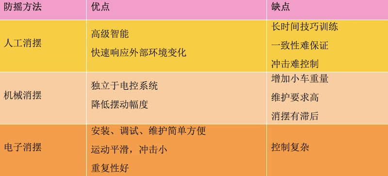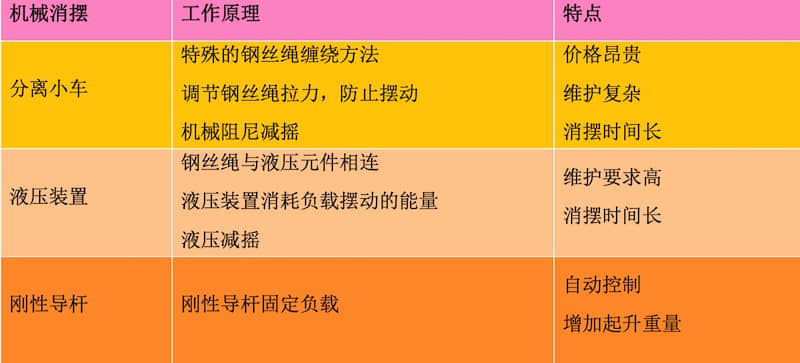 消除摇摆的方法有三种:人工消摆,机械减摇,电子防摇。